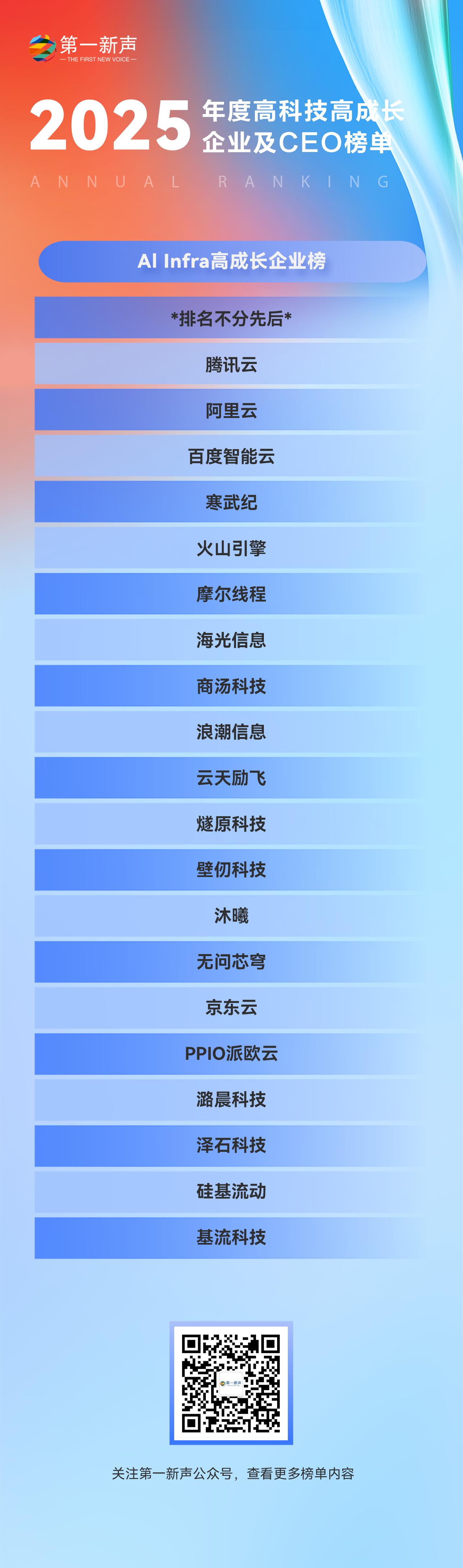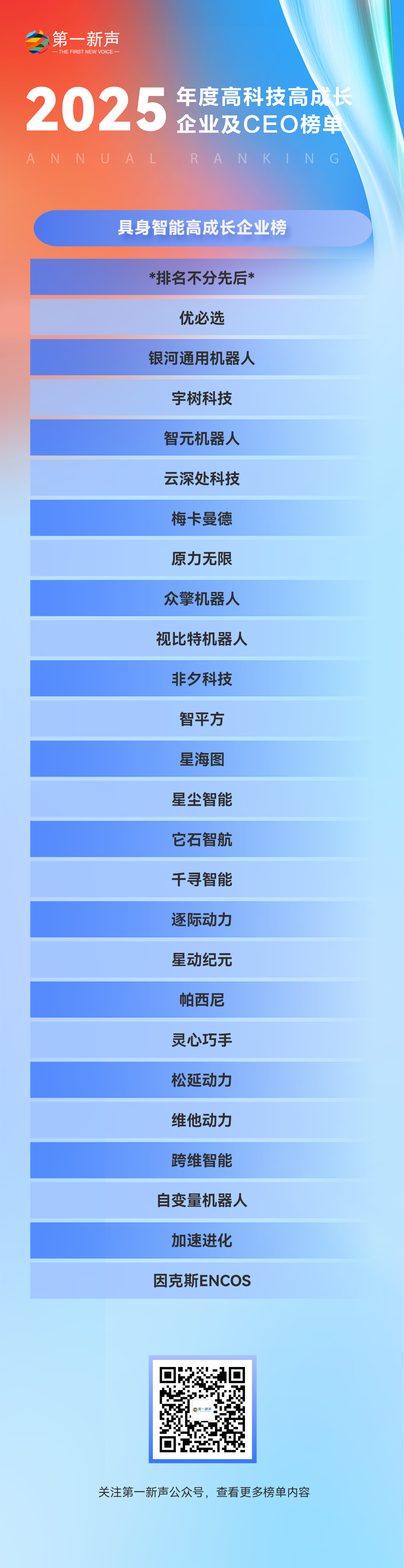 当技术突破成为常态,当产业升级成为共识,当全球竞争成为机遇,中国科技产业正站在全新的历史起点。哪些企业在2025年实现了关键突破?哪些领军者引领了产业航向?现在,第一新声正式揭晓第五届「2025年度中国高科技高成长企业及CEO榜单」,与你共同见证中国科技的力量与未来!