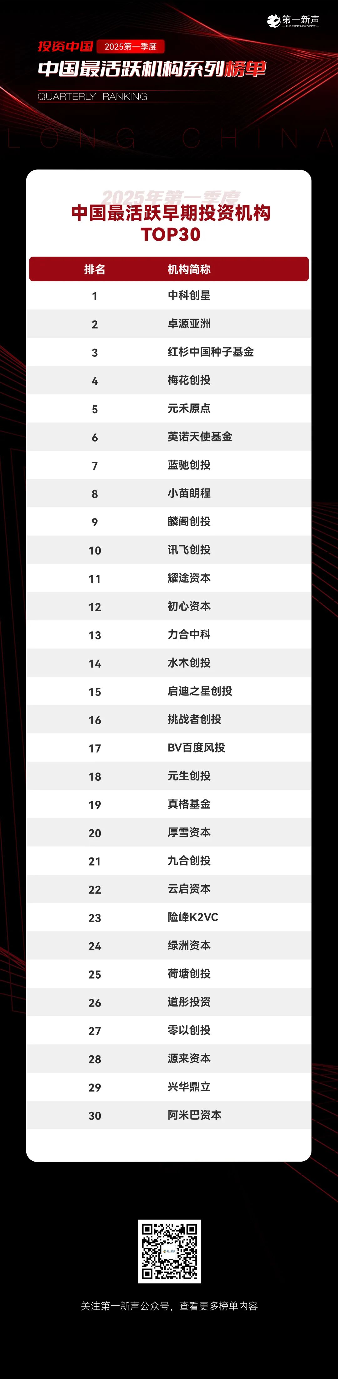 2025年Q1中国最活跃机构系列榜单包括「综合榜」「行业榜」两大类。