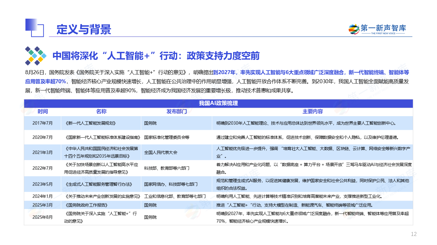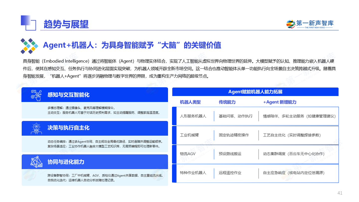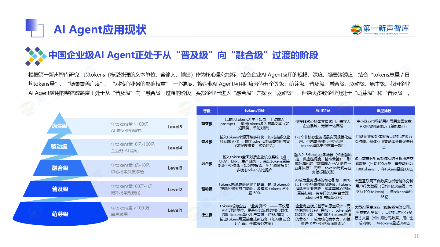 在行业应用层面,AI Agent的价值释放与行业数字化基础、数据成熟度高度相关。AI Agent正在多个关键领域实现从“辅助工具”到“核心驱动”的角色转变。根据第一新声智库研究,AI Agent已走出试验阶段,其应用深度与行业数字化基础高度相关,并在金融、通信等数据密集型行业中率先形成规模价值。