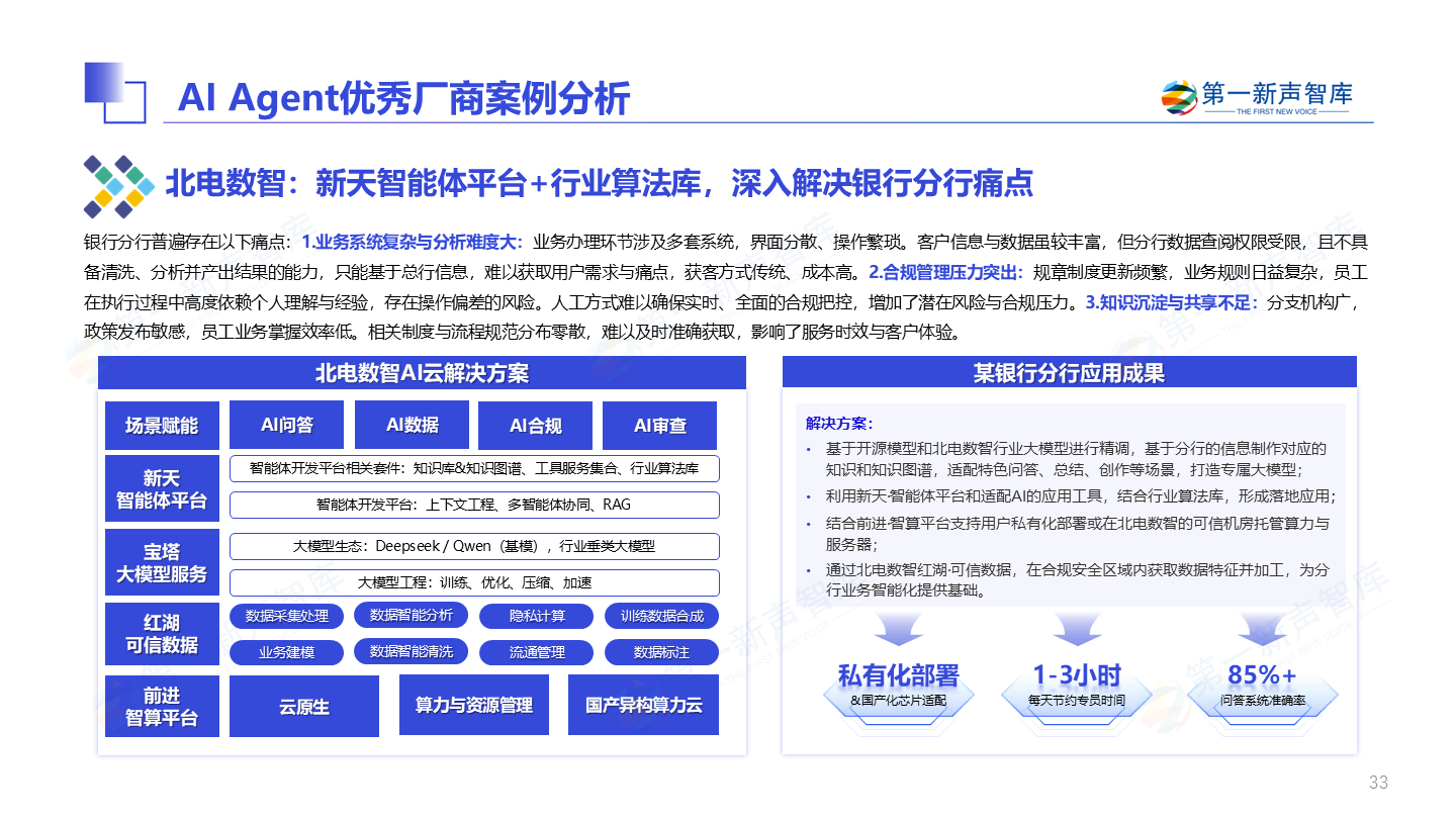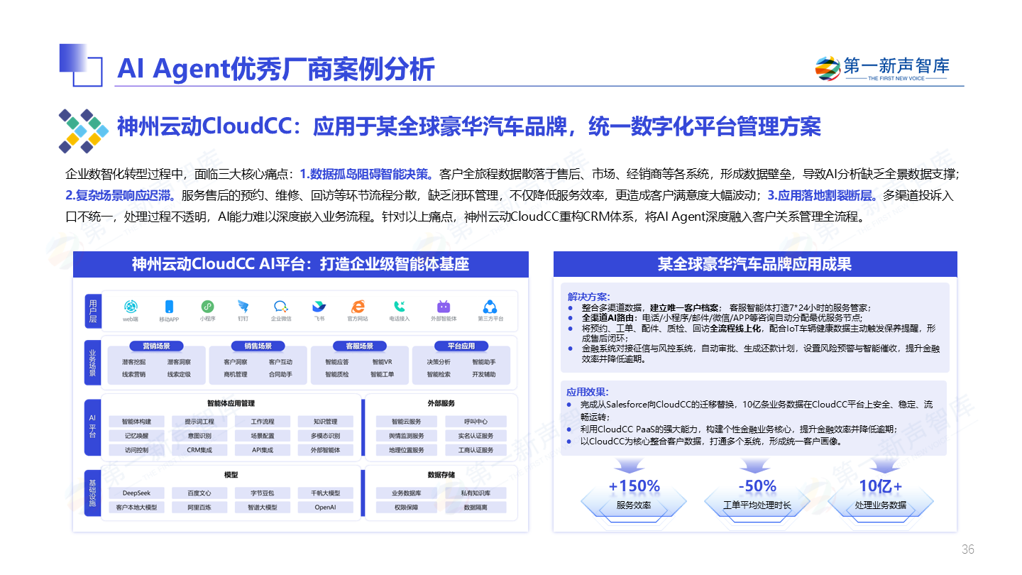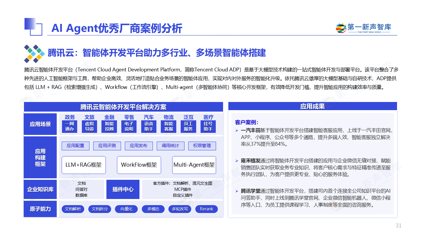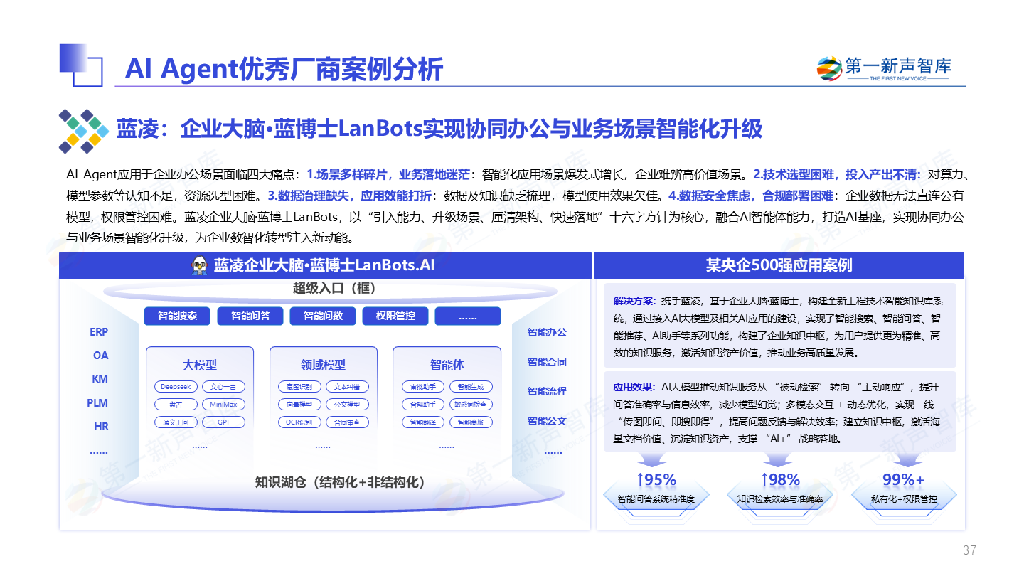 在行业应用层面,AI Agent的价值释放与行业数字化基础、数据成熟度高度相关。AI Agent正在多个关键领域实现从“辅助工具”到“核心驱动”的角色转变。根据第一新声智库研究,AI Agent已走出试验阶段,其应用深度与行业数字化基础高度相关,并在金融、通信等数据密集型行业中率先形成规模价值。