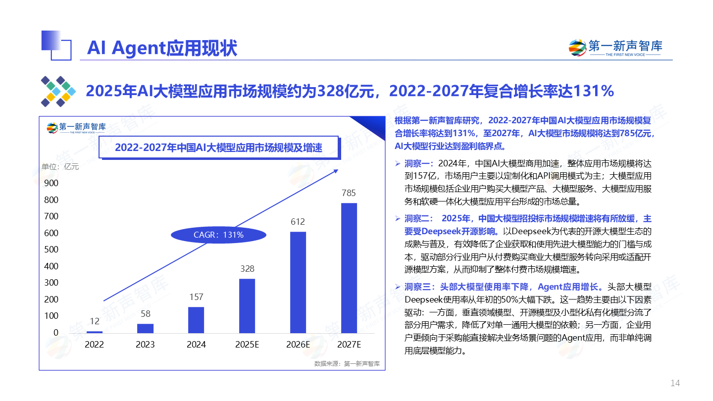 AI Agent应用场景智能客服渗透率最高,数据分析成为第二增长曲线