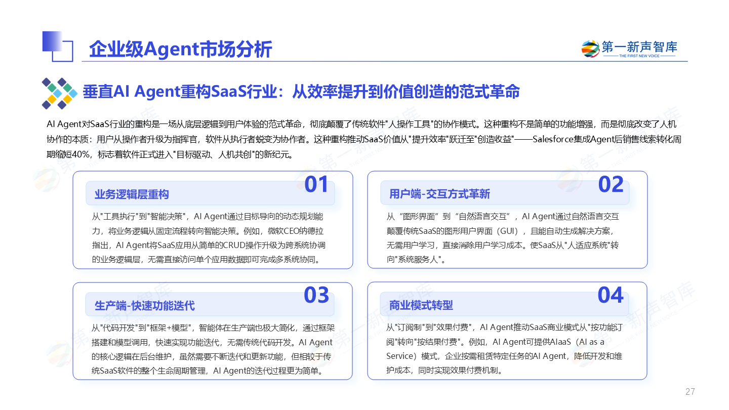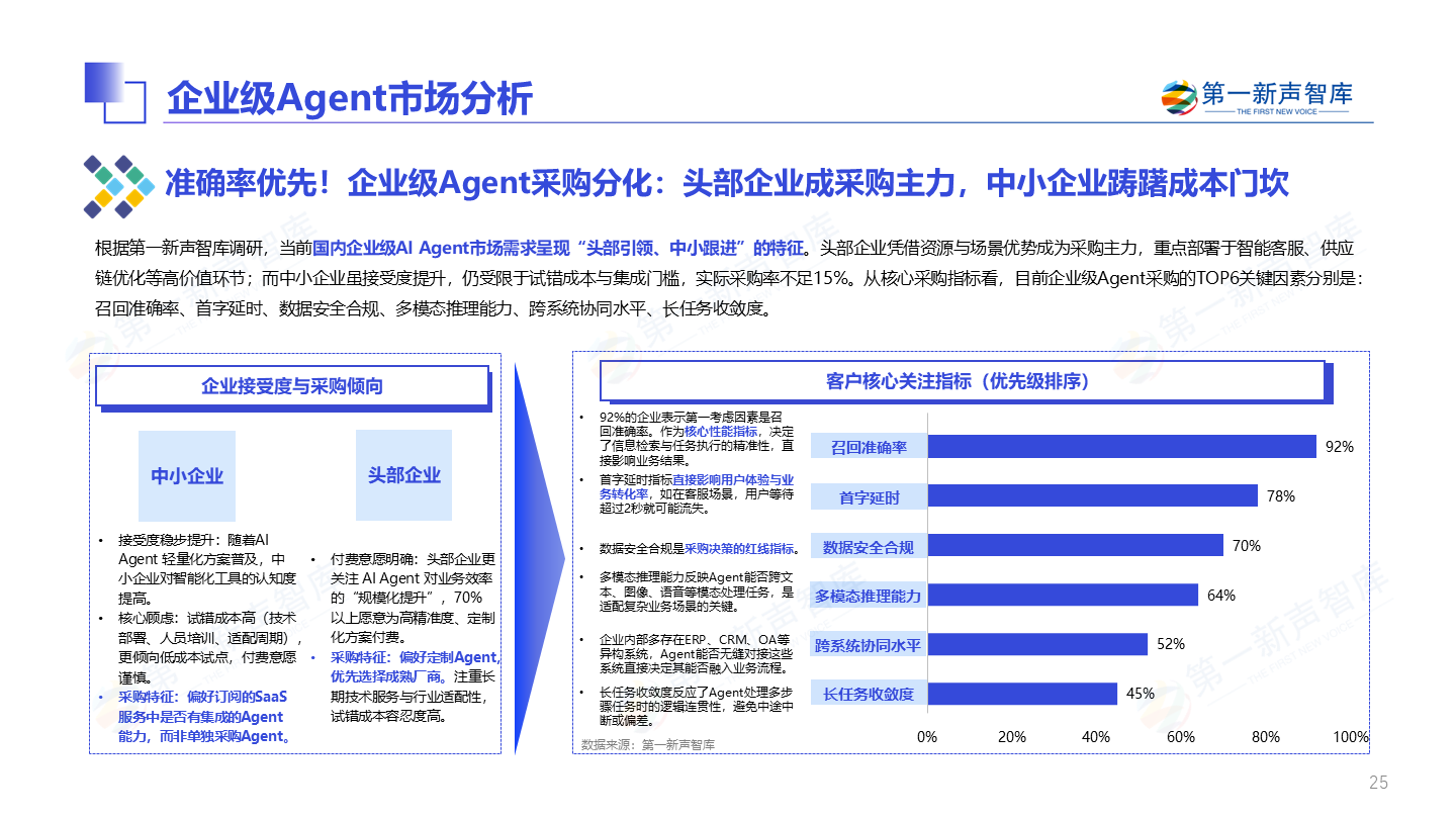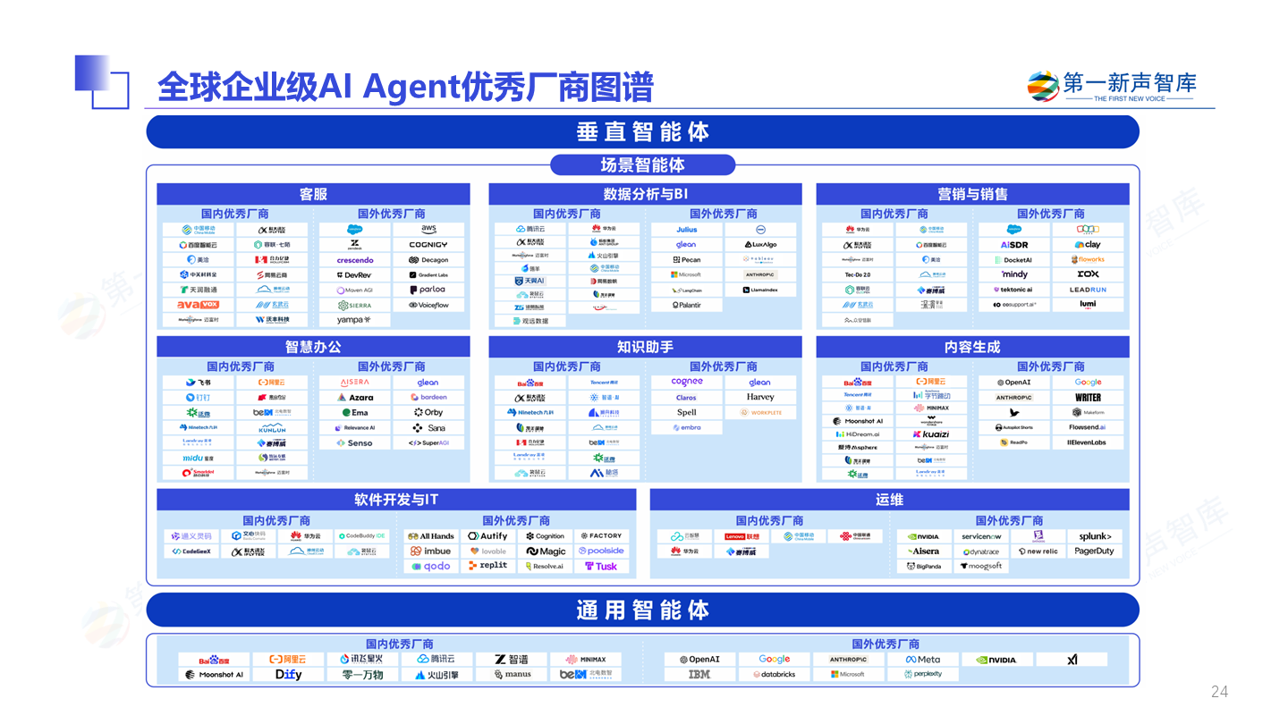 2025年6月,第一新声智库正式启动《2025年中国企业级AI Agent应用实践研究报告》,在近3个月的时间里,我们通过线上线下,深入WAIC大会等活动,面向70多家Agent与AI公司进行访谈与调研,并结合大量专家的定性研究内容,正式完成《2025年中国企业级AI Agent应用实践研究报告》。