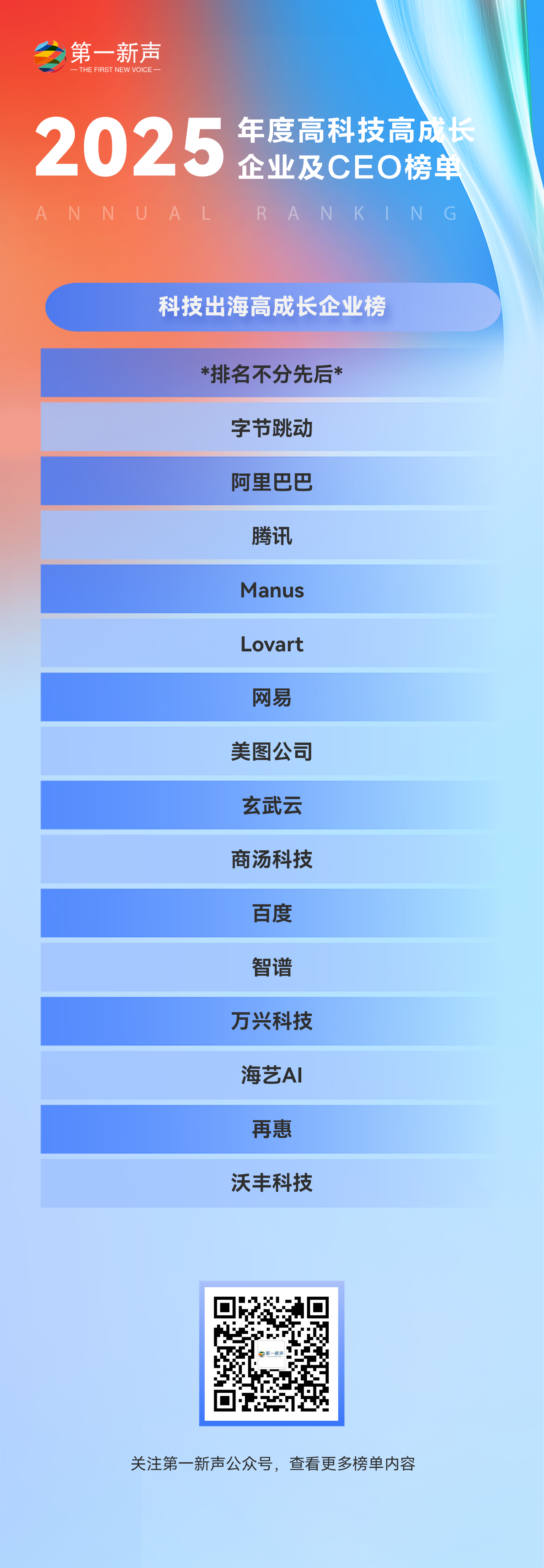 产业的升级,终究离不开人的引领。2025年上榜的科技CEO群体,勾勒出新一代领军者的鲜明特质:他们既是深耕技术的“极客”,也是洞察市场的“企业家”,更具备立足全球的战略视野。