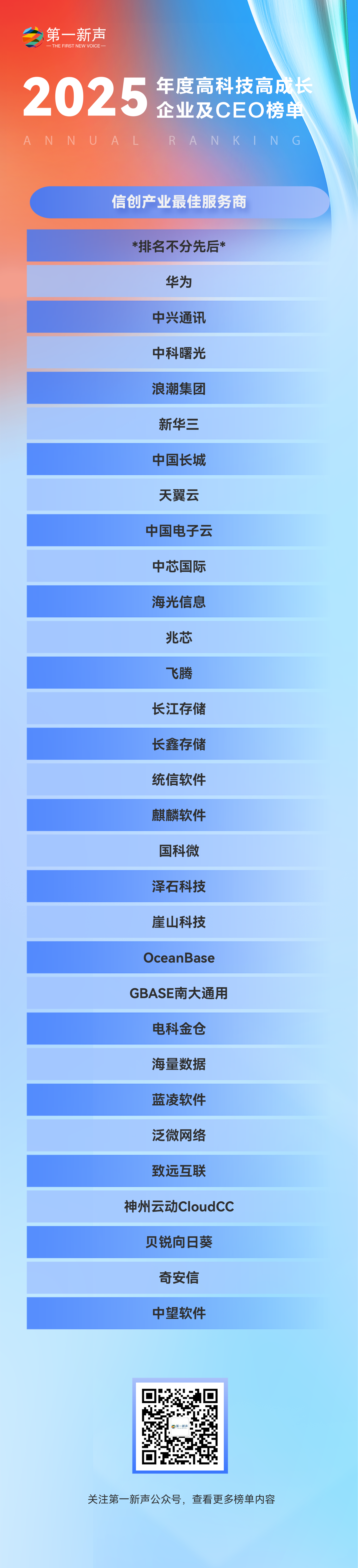 当技术突破成为常态,当产业升级成为共识,当全球竞争成为机遇,中国科技产业正站在全新的历史起点。哪些企业在2025年实现了关键突破?哪些领军者引领了产业航向?现在,第一新声正式揭晓第五届「2025年度中国高科技高成长企业及CEO榜单」,与你共同见证中国科技的力量与未来!