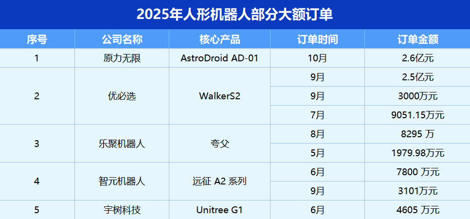 2025年以来,全球人形机器人行业的大额订单呈现井喷态势,原力无限的2.6亿订单并非个例。